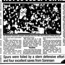 Sorensen notwithstanding Spurs would probably have won had they managed to establish the sort of lofty, muscular presence near goal which had enabled West Ham to come from behind to beat David OโLearyโs side at Villa Park the previous weekend. But the only forward capable of doing this at present was resting up by the Nile, having helped Egypt beat Libya in the African Nations Cup on Friday.