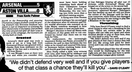 Villa started well enough and with Arsenal struggling to find their rhythm in the opening stages, the Midlanders carved out two opportunities for Kevin Phillips.
