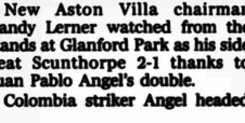 Fuelled by a sense of injustice Scunthorpe redoubled their efforts and Andy Keogh almost squeezed a shot past Sorensen. Villa scored again when Angel headed Aaron Hughesโs cross past Murphy but Sharpโs header from a corner ensured a lively final quarter.