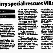 However, Barry secured Villa a point with a superb curled 20-yard strike five minutes later.