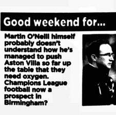 Wilfred Bouma makes his 25th start in a Villa shirt (26 Appearances) to make it W9 D6 L11 and 2 Bookings so far in his Villa career.