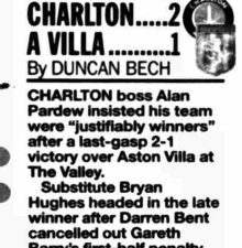 | 90โ+1 Goal, 1-2, (Charlton Athletic), Bryan Hughes