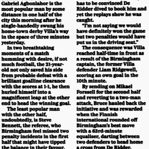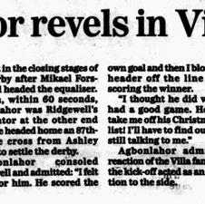 Agbonlahor beat Ridgewell to Youngโs cross from the right and, although Taylor got a hand to his flicked header, he could not keep it out.