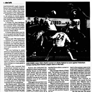 *Martin Laursenโs 84th-minute winner helped Aston Villa to sixth place in the Premier League after an entertaining match against Tottenham.*