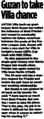 A pretty turgid first half was followed by more of the same in the second, during which Villaโs profligacy was again evident - Barry the guilty party on 70 minutes when he headed another fine Ashley Young cross straight at Schwarzer from six yards out.
