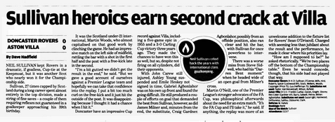 But Villa always looked dangerous and Doncasterโs veteran keeper Neil Sullivan produced fine saves to deny Gabriel Agbonlahor and Curtis Davies.