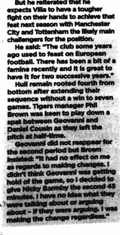 The three points mean that Villa have secured European football for next season while the result means that the Tigersโ Premier League future is anything but secured.