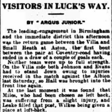 Small Heath, simply referred to as Heath by the media typify their like after "a grossly unsportsmanlike bit of work" by Green renders Villa's Alex Leake unconscious.