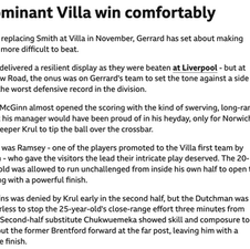 Villa canter to victory at Carrow Road as they win for the fourth time in six under new boss Steven Gerrard.