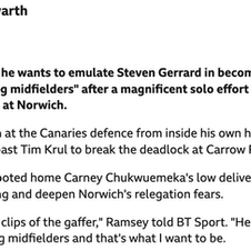 “I’ve been watching clips of the gaffer,” Ramsey told BT Sport. “He was one of the best goalscoring midfielders and that’s what I want to be.