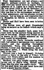 Meanwhile, forward Alec Logan made a goalscoring debut for Villa aged 25 after moving from Falkirk and joined his brother Jock in the Villa XI.