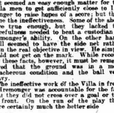 Meanwhile, midfielder George Tranter made his Villa debut aged 21 after joining from Stourbridge FC and full back Watty Corbett made his final appearance aged 26 after 13 appearances in 3 seasons before moving on to Birmingham in June 1907.