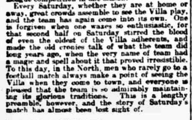 For the next 15 minutes the pressure borne upon the Sunderland goal is of epic proportions before Chris Buckley, up from defence, dribbles his way through for the equaliser before 2' later Billy Gerrish hits the winner of a game in which Villa could easily have amassed double figures.