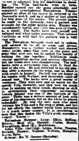 🟩 19 Nov 1910, Villa 2-1 Spurs, White Hart Lane