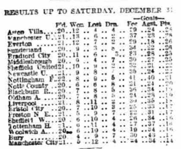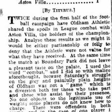 🟨 31 Dec 1910, Villa 1-1 Oldham, Boundary Park