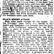 Winger Walter Watson plays the last of his 3 games for Villa aged 21 before moving on to Rotherham Town in July 1913.
