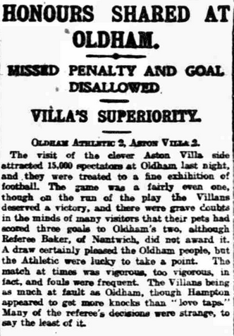 ๐จ 9 Sep 1912, Villa 2-2 Oldham, Boundary Park