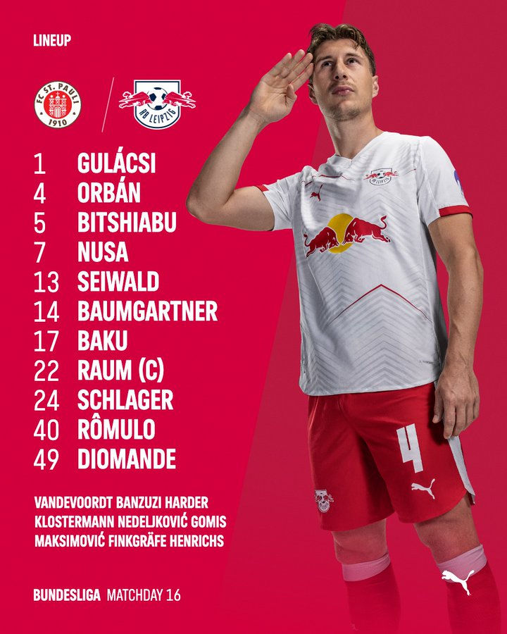 7.30pm RB Leipzig š©šŖ scheduled to play St Pauli š©šŖ in the Bundesliga.